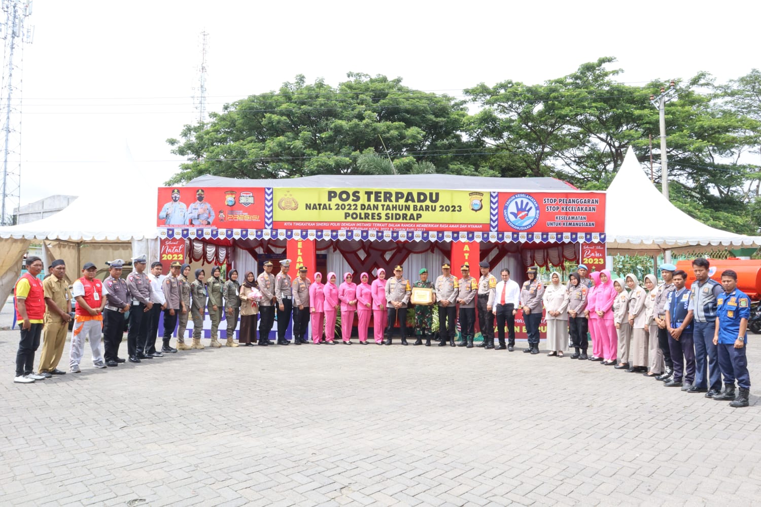 TEROBOSNUSANTARA.COM-SIDRAP – Ops Lilin 2022, Kapolres Sidrap AKBP Erwin Syah. S.I.K., di dampingi Ibu Ketua Bhayangkari Cabang Sidrap Ny. Siska Erwin Syah, Wakapolres KOMPOL M. Akib serta para PJU menyambangi Pos Pengamanan (Pos Pam) Operasi Lilin 2022 dalam rangka pengamanan hari natal 2022 dan tahun Baru 2023, Senin (26/12/22).