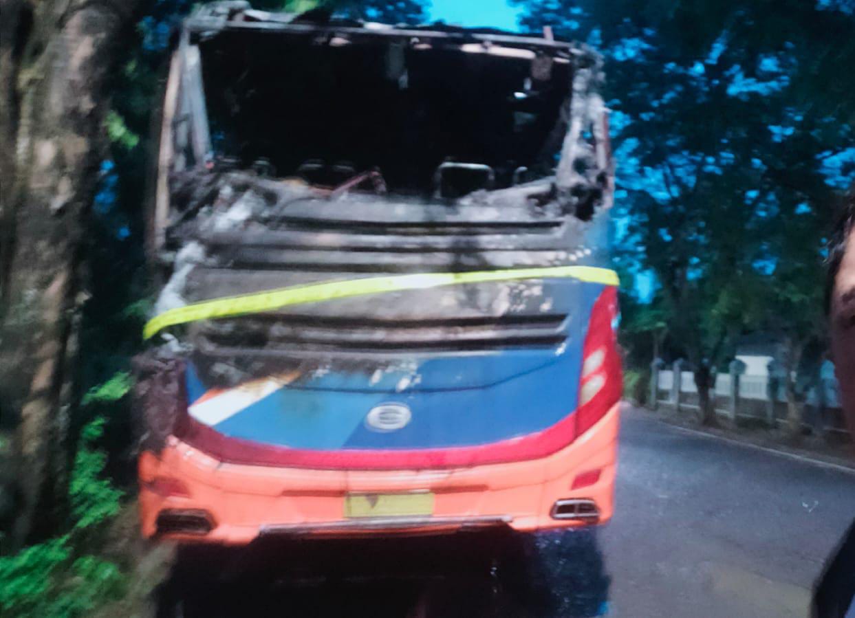 “Api ini di duga muncul dari bagian mesin belakang kendaraan dengan cepat menjalar dan menghanguskan bagian belakang kendaraan,” Ujar Kasat Lantas.