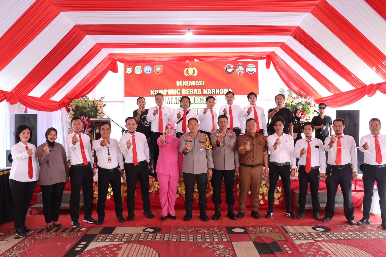 SIDRAP – TEROBOSNUSANTARA.COM-Kapolres Sidrap AKBP Erwin Syah,SIK bersama Asisten III Pemkab Sidrap, Dandim 1420 Sidrap Letkol Inf Andika Ari Prihantoro,SE.,M.I.Pol, Kasat Narkoba AKP Arham Gusdiar dan Kepala KBN Iwan Darmawan melakukan Deklarasi Kampung Bebas Narkoba Mappedeceng Polres Sidrap.