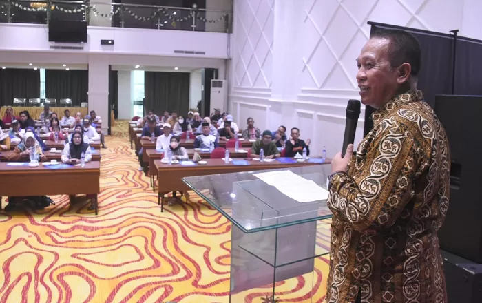 TEROBOSNUSANTARA.COM, MAKASSAR – Anggota DPRD Makassar Hasanuddin Leo melakukan sosialisasi Penyebarluasan Peraturan Daerah (Perda) Nomor 1 Tahun 2019 tentang Penyelenggaraan Pendidikan, di Hotel Travellers Phinisi, Jalan Lamadukelleng Buntu, Sabtu (18/11/2023).