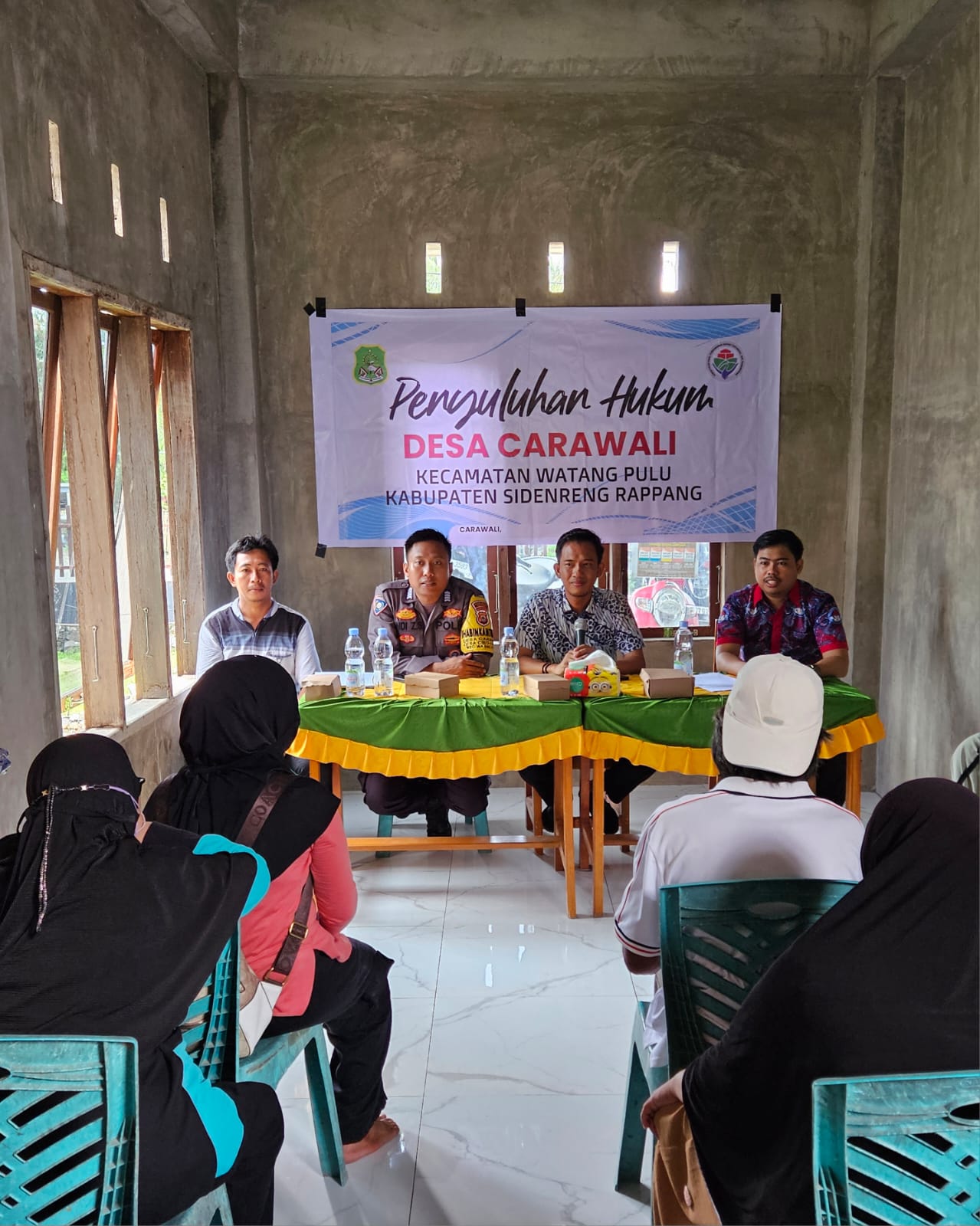 TEROBOSNUSANTARA.COM-SIDRAP – Kanit Tipikor Sat Reskrim Polres Sidrap IPDA Amdaryono Saputra, S.H didampingi oleh Bhabinkamtibmas Desa Carawali Bripka Andi Zainal memberikan Penyuluhan Hukum di Kantor Desa Carawali, Kec. Watang Pulu, Kab. Sidrap.