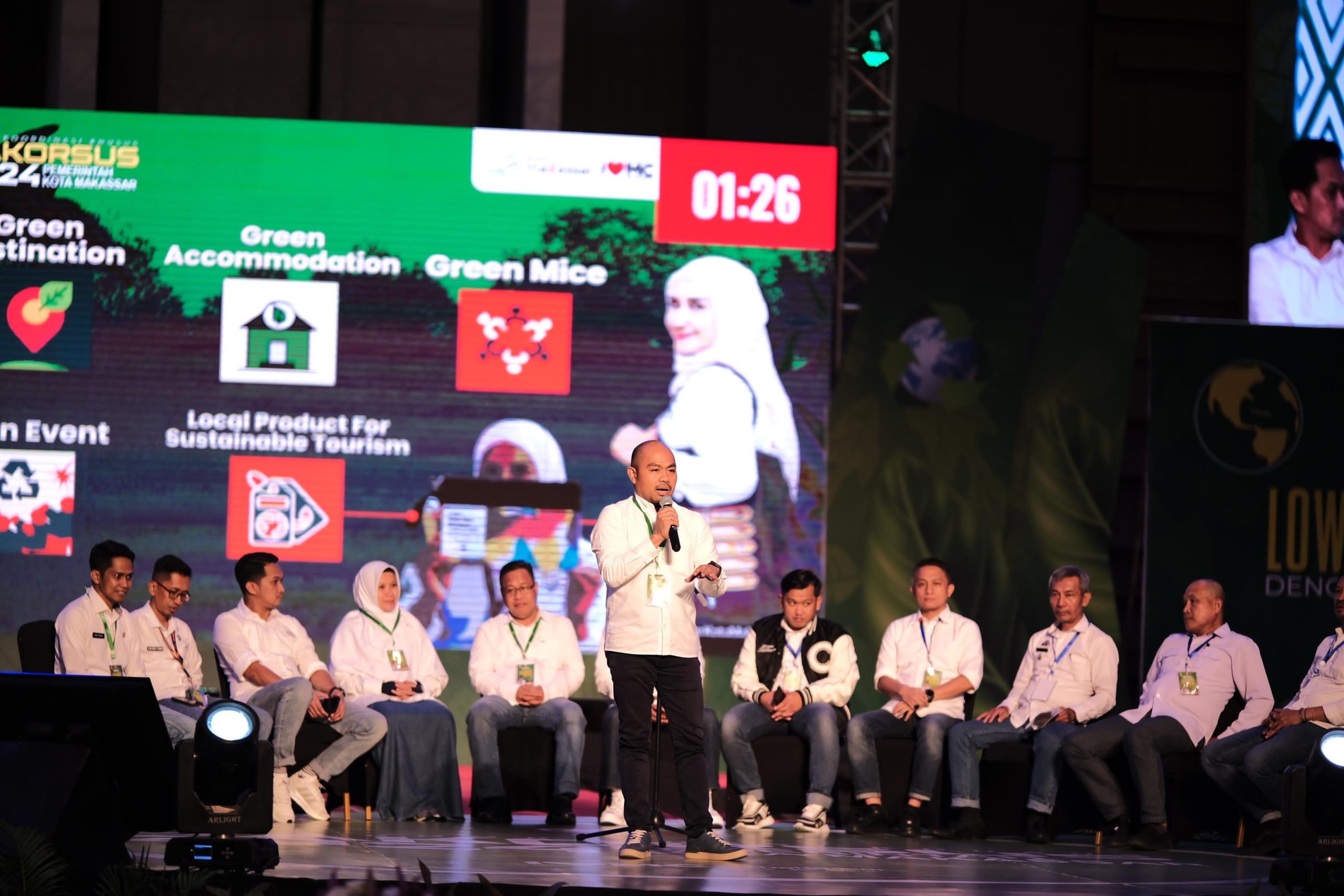 Mengangkat Makassar Green Destination, Kadispar Kota Makassar, Muhammad Roem memaparkan capaian kerja Dinas Pariwisata Kota Makassar sepanjang Tahun 2023, strategi pengembangan parekraf Kota Makassar dengan tiga prinsip yaitu produktif, inklusif dan berkelanjutan. Muhammad Roem juga menjelaskan komitmen Dinas Pariwisata Kota Makassar dalam mendukung Makassar Low Carbon City dengan Metaverse dengan mempromosikan Kota Makassar sebagai destinasi pariwisata yang ramah lingkungan dan berkelanjutan.