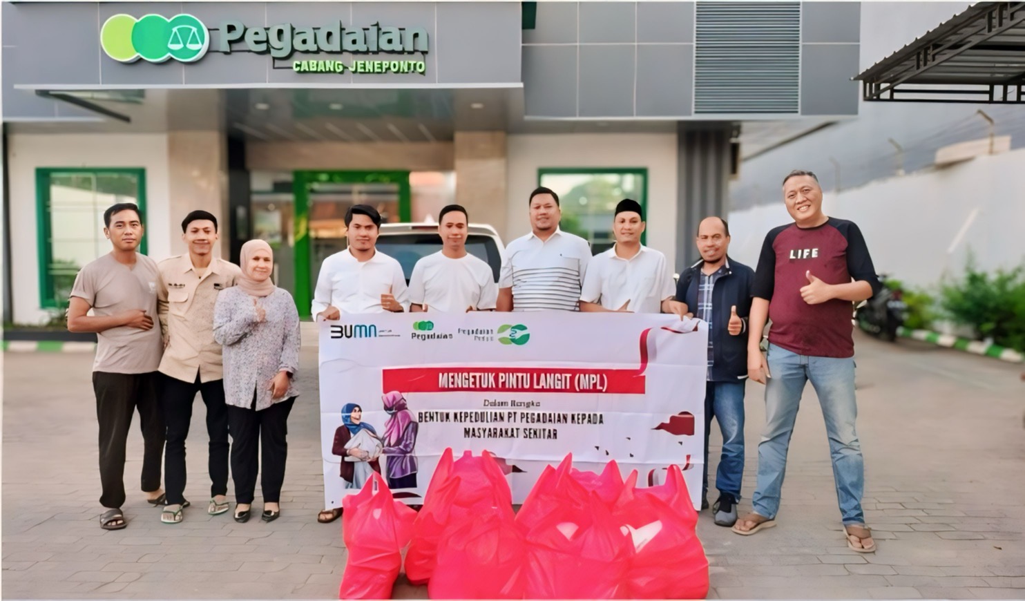 TEROBOSNUSANTARA.COM, MAKASSAR, — PT Pegadaian Kanwil VI Makassar melaksanakan program CSR bertema “Mengetuk Pintu Langit” yang dilaksanakan serentak di kantor cabang Pegadaian maupun Pegadaian Syariah kanwil makassar. Program ini berfokus pada sedekah setiap hari Jumat selama bulan Mei dengan membagikan makanan siap saji yang dilakukan secara sporadis di cabang pegadaian.
