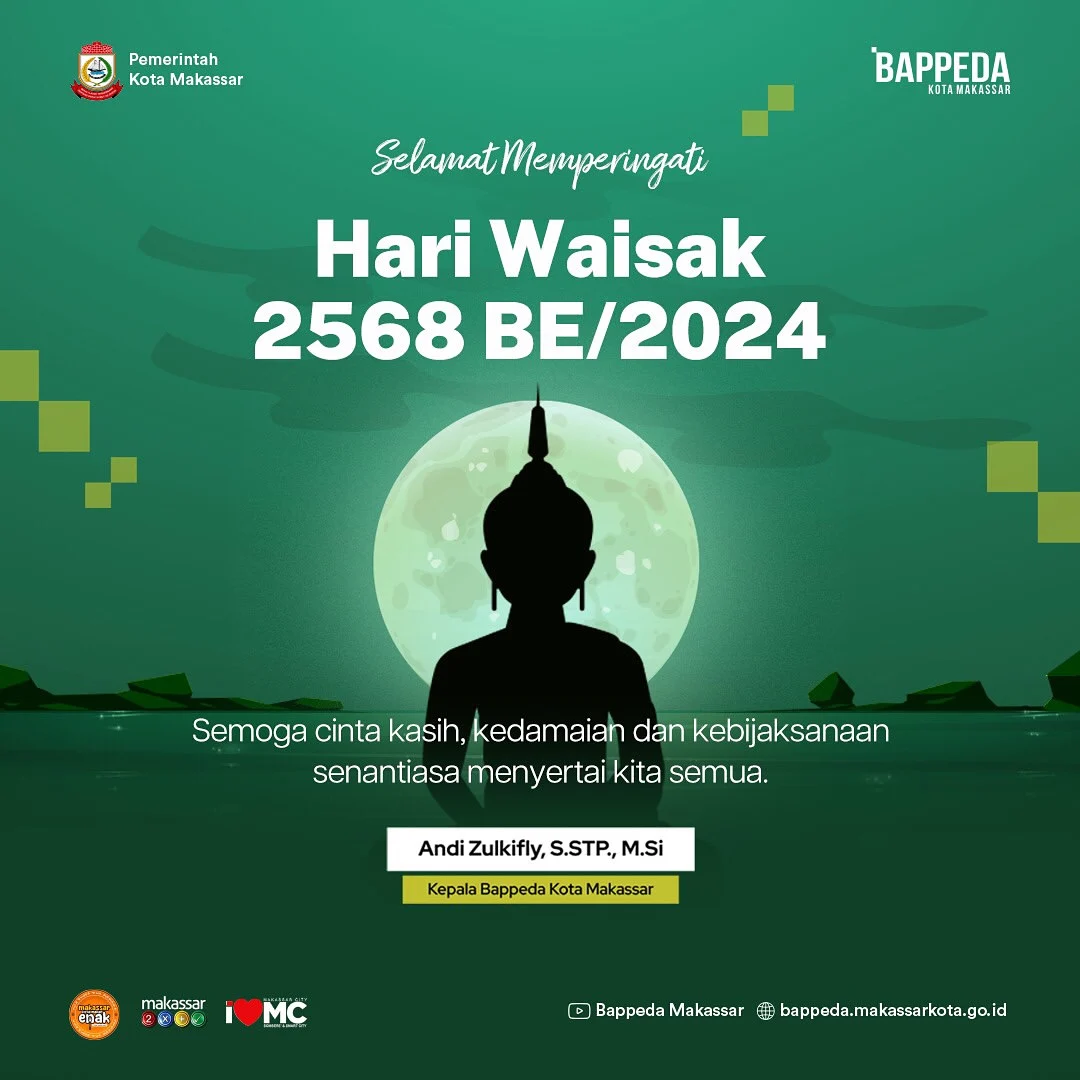 TEROBOSNUSANTARA.COM,MAKASSAR – Kepala Badan Perencanaan Pembangunan Daerah (Bappeda) Kota Makassar, Andi Zulkifly Nanda, menyampaikan ucapan selamat Hari Raya Waisak 2568 BE/2024 kepada seluruh umat Buddha yang merayakannya.