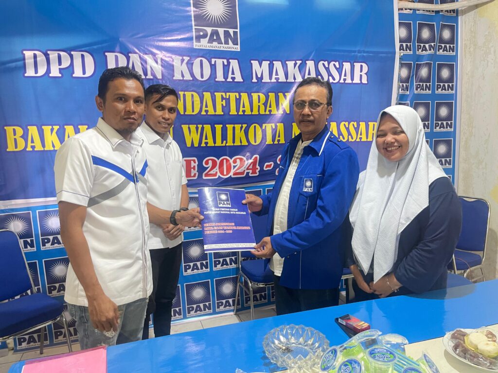 TEROBOSNUSANTARA.COM, MAKASSAR — Andi Seto Asapa mengembalikan formulir pendaftaran bakal calon wali kota Makassar di DPD PAN Makassar, di Jalan Abdullah Dg Sirua, pada Jumat (26/7/2024).