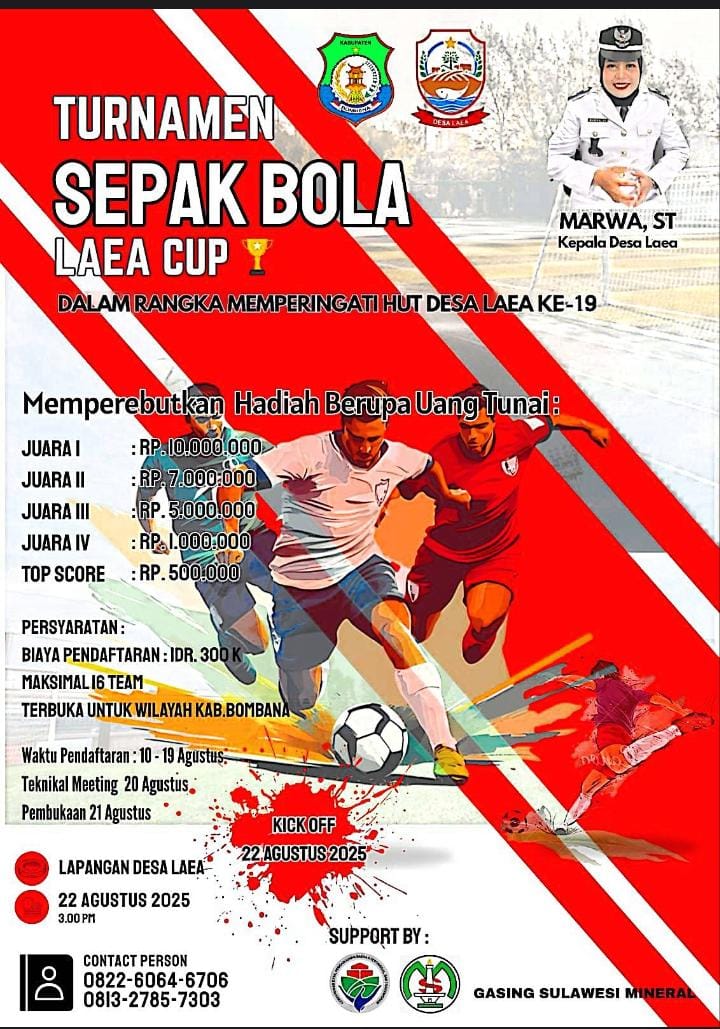 โKita ingin HUT Desa La ea bukan hanya menjadi seremoni tahunan, tapi momentum membangkitkan semangat kebersamaan dan prestasi. La ea Cup 1 ini bukan sekadar pertandingan, tapi arena membangun masa depan generasi muda lewat olahraga,โ ujar Marwa saat di temui di sela persiapan kegiatan