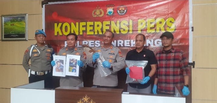 Kapolres Enrekang AKBP Hari Budiyanto, SH, S.IK, MH, bersama Kasat Reskrim Iptu Herman dan Kanit Tipidum, menyampaikan detail kasus dalam konferensi pers yang diadakan untuk memberikan transparansi informasi kepada masyarakat.