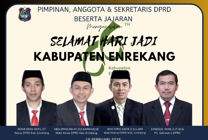 TEROBOSNUSANTARA.COM-ENREOANG-Ketua DPRD Kabupaten Enrekang, Ikrar Eran Batu, siap menyambut Hari Ulang Tahun (HUT) Enrekang ke-66 tahun 2026. Ikrar Eran Batu terpilih sebagai Ketua DPRD Enrekang masa jabatan 2024-2029
