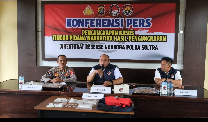 TEROBOSNUSANTARA.COM-KENDARI – Direktorat Reserse Narkoba Polda Sulawesi Tenggara mengungkap kasus peredaran narkotika jenis sabu seberat 1.026 gram atau lebih dari 1 kilogram, dalam operasi penindakan di kawasan Jalan Z.A. Sugianto, Kelurahan Kambu, Kecamatan Kambu, Kota Kendari. Pengungkapan tersebut dipublikasikan dalam press conference di Balai Wartawan Polda Sultra, Rabu (29/4/2026).